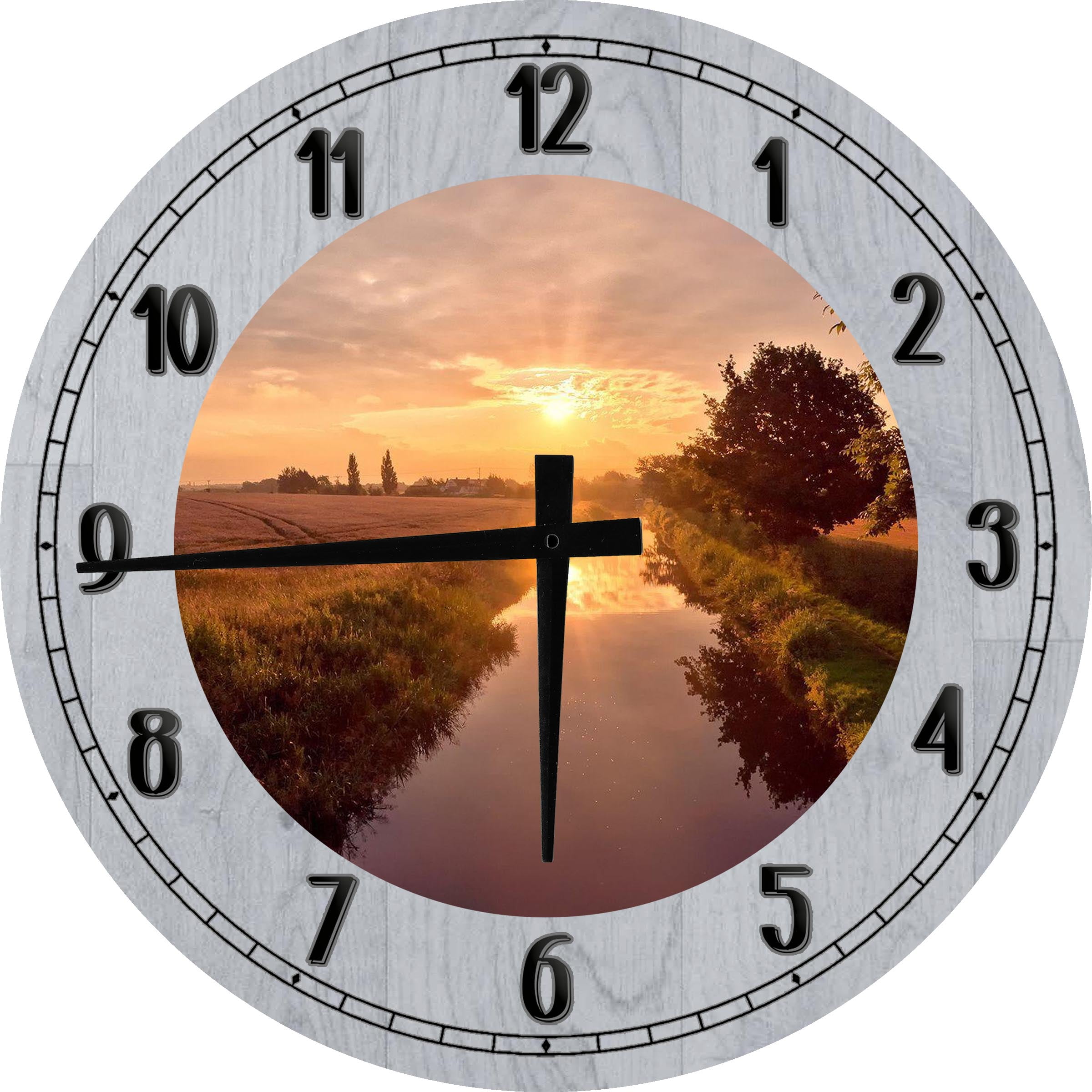 Wood Wall Clock 12 Inch Farmhouse Wall Art Farming At Sunrise In The Country Water Canal Round Small Battery Operated Gray Walmart Com
